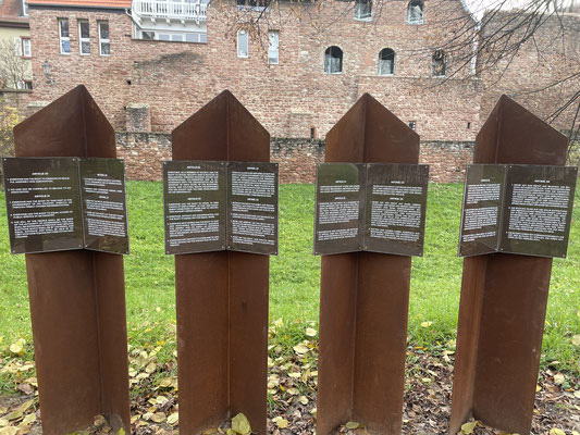 Genau am Tag der Menschenrechte wurde der "Ort der Menschenrechte" in Ladenburg festlich eröffnet. Sichtbares Zeichen sind 16 Stelen, gestaltet vom Künstler Hans Michael Kissel.